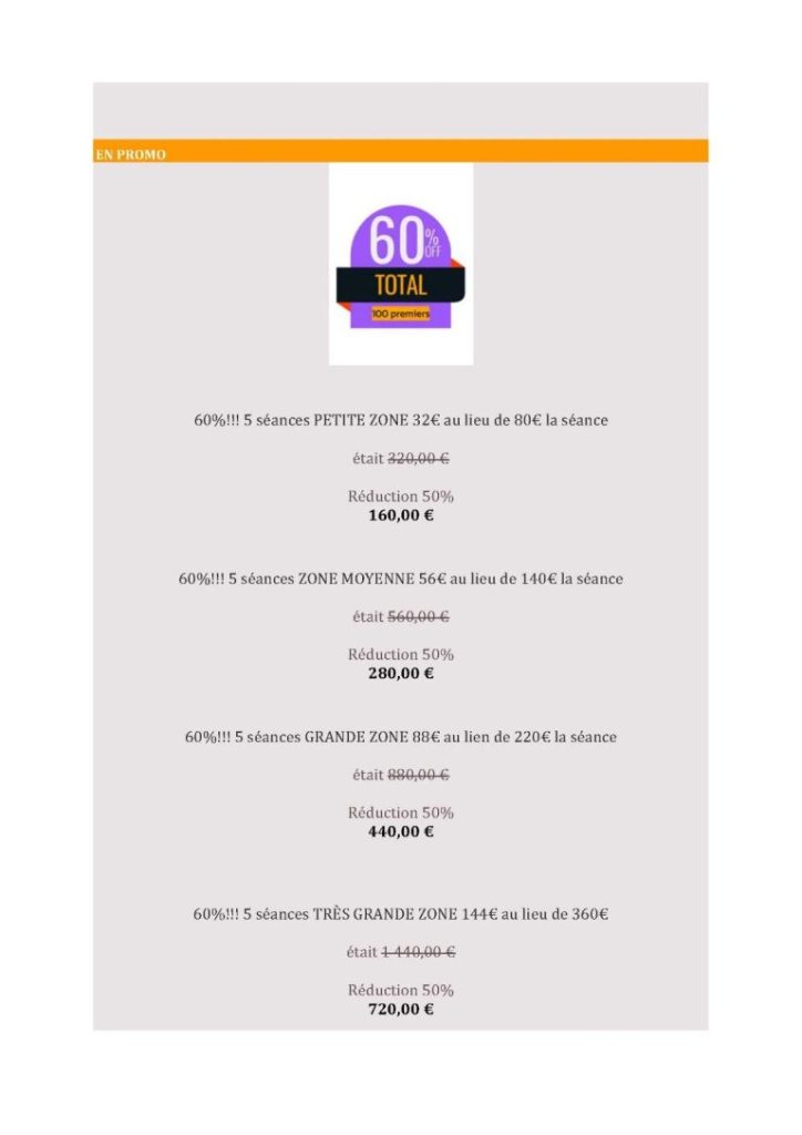 TRÈS GRANDE ZONE | 5 séances à 720 € (144 € la séance au lieu de 360 €) |